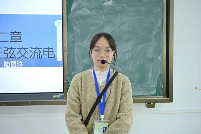 陸麗玲老師圍繞 “初步認識正弦交流電” 展開教學,重點講解其定義及三要素等核心內容。教學中,她用通俗語言解讀專業(yè)知識點,幫助學生輕松理解重難點;同時引導學生運用正弦交流電的參數(shù)進行簡單計算,并學會識別其波形圖,助力學生扎實掌握電工電子入門技能。