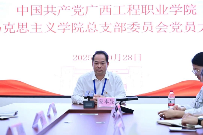 黨委書記、政府督導(dǎo)專員蒙本曼到會講話。他代表學(xué)校黨委祝賀大會成功選舉出首屆馬克思主義學(xué)院黨總支部委員,強調(diào)馬克思主義學(xué)院作為思想政治教育的主陣地,黨總支部建設(shè)意義深遠、責(zé)任重大。他勉勵總支部委員會要強化理論武裝,深入學(xué)習(xí)貫徹習(xí)近平新時代中國特色社會主義思想,特別是習(xí)近平總書記關(guān)于思想政治工作和教育工作的重要論述,以黨建為引領(lǐng),夯實組織基礎(chǔ),嚴格落實“三會一課”、組織生活會等制度,更加彰顯陣地優(yōu)勢,推動思政課改革創(chuàng)新,增強思政課教育的吸引力與感染力,提升黨總支部標準化規(guī)范化信息化建設(shè)水平,切實發(fā)揮馬克思主義學(xué)院在全校思想政治工作中的示范引領(lǐng)作用。
