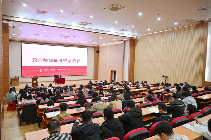 他強調(diào),開展師德師風警示教育,不是單純“擺問題”,而是要引導全體教師從案例中汲取教訓、對照查擺。通過深刻自我檢視,及時發(fā)現(xiàn)并糾正不足。教師的一言一行皆影響學生,教師要以《新時代高校教師職業(yè)行為十項準則》為遵循,牢記為黨育人、為國育才的初心使命,秉持對學生、家長、社會負責的態(tài)度,立德修身、潛心治學、開拓創(chuàng)新,自覺踐行“四有”好老師標準,努力成為“經(jīng)師”和“人師”相統(tǒng)一的“大先生”,為培養(yǎng)德智體美勞全面發(fā)展的社會主義建設者和接班人貢獻力量。