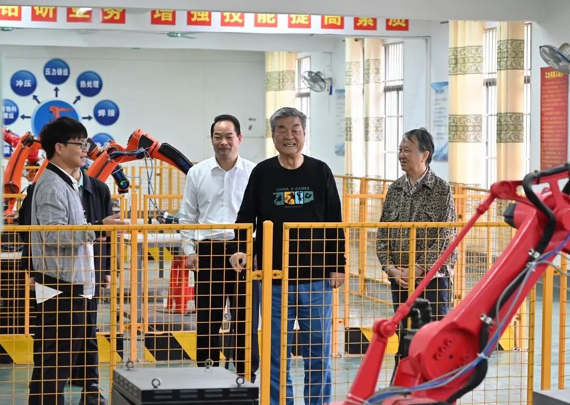 在學校領導陪同下,劉大椿先生一行走訪參觀了校園環(huán)境、汽車與機電學院工業(yè)機器人實驗實訓室、土木工程學院建筑材料力學實訓室、 鐵道與航空學院航空模擬實訓室等專業(yè)實訓室場所和校史展。劉大椿先生邊走邊詢問,詳細了解校園規(guī)劃建設、實訓基地功能布局、教學場景應用及校企協(xié)同育人成效,對我校占地近1800畝、全日制在校生2萬人的辦學規(guī)模和技術技能教育的豐碩成果給予高度評價。他指出,學校構建的實訓教育教學體系精準對接市場產業(yè)需求,堅定走科技創(chuàng)新、產教融合、職普融通之路,完全契合現(xiàn)代化職業(yè)教育發(fā)展大勢和建設制造業(yè)強國的國家發(fā)展戰(zhàn)略。