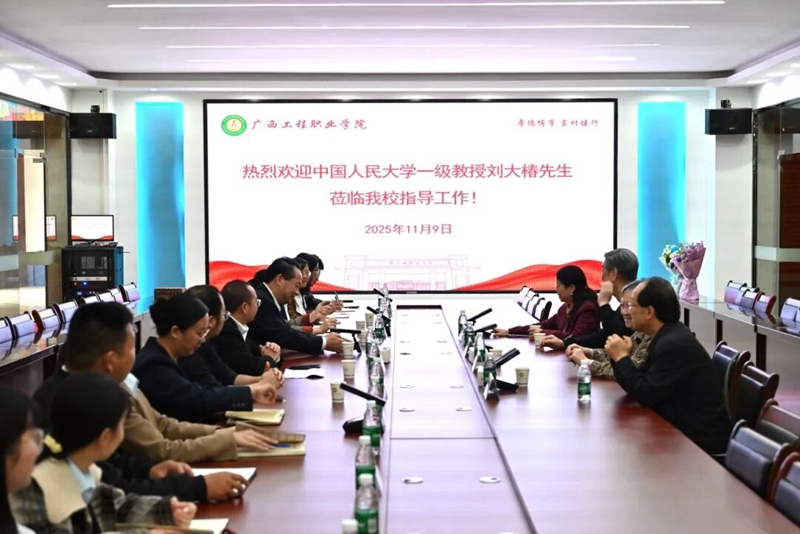 2025年11月9日,中國首批一級教授(文科院士)、中國科學技術哲學領軍學者、中國人民大學一級教授劉大椿先生,帶領中國人民大學、中國農業(yè)大學、廣西大學等專家教授一行4人蒞臨我校指導工作。學校黨委書記、政府督導專員蒙本曼,黨委副書記黃秋霞,紀委書記、副校長彭高彬,副校長蔣茂麗、李明澤等校領導及各部門負責人熱情接待。