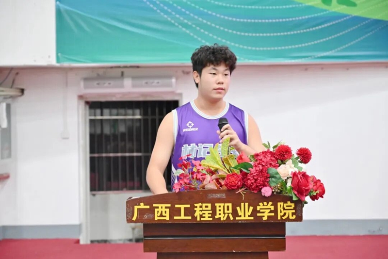 運(yùn)動(dòng)員代表黃新雄同學(xué)發(fā)言,他指出籃球是團(tuán)隊(duì)協(xié)作、拼搏超越的精神象征,更是新生間聯(lián)結(jié)友誼、證明自我的舞臺(tái)。全體運(yùn)動(dòng)員將秉持“友誼第一,比賽第二”的精神,尊重裁判與對(duì)手,以堅(jiān)韌意志和蓬勃朝氣投入賽事,享受運(yùn)動(dòng)快樂(lè),書(shū)寫(xiě)青春篇章。