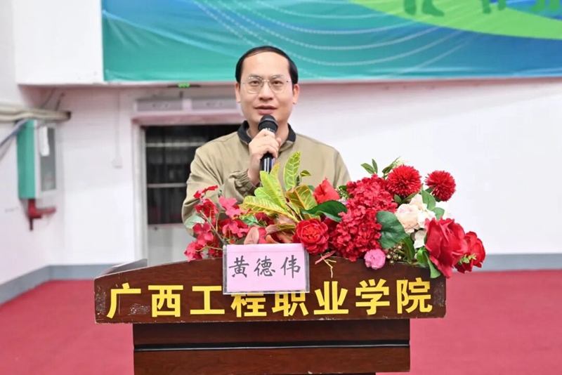 圖為副校長(zhǎng)黃德偉宣布廣西工程職業(yè)學(xué)院2025年“新生杯”籃球大賽正式開(kāi)始