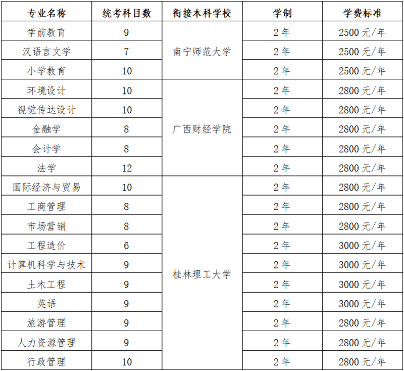 我校立足于社會(huì)發(fā)展需求與學(xué)生職業(yè)發(fā)展導(dǎo)向,重磅攜手南寧師范大學(xué)、廣西財(cái)經(jīng)學(xué)院、桂林理工大學(xué)等多所優(yōu)質(zhì)本科院校,建立深度戰(zhàn)略合作。這些院校及相關(guān)專業(yè)均經(jīng)過(guò)嚴(yán)格評(píng)估,與學(xué)?,F(xiàn)有專業(yè)體系高度契合。我們強(qiáng)強(qiáng)聯(lián)合,旨在為學(xué)生搭建與我校專業(yè)無(wú)縫銜接的優(yōu)勢(shì)本科專業(yè),只為提供一條高匹配度、高含金量的本科進(jìn)階通道。