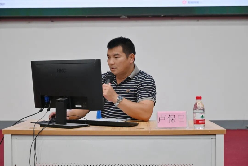 圖為法務(wù)部部長盧保日作《廣西工程職業(yè)學(xué)院章程》專題教育