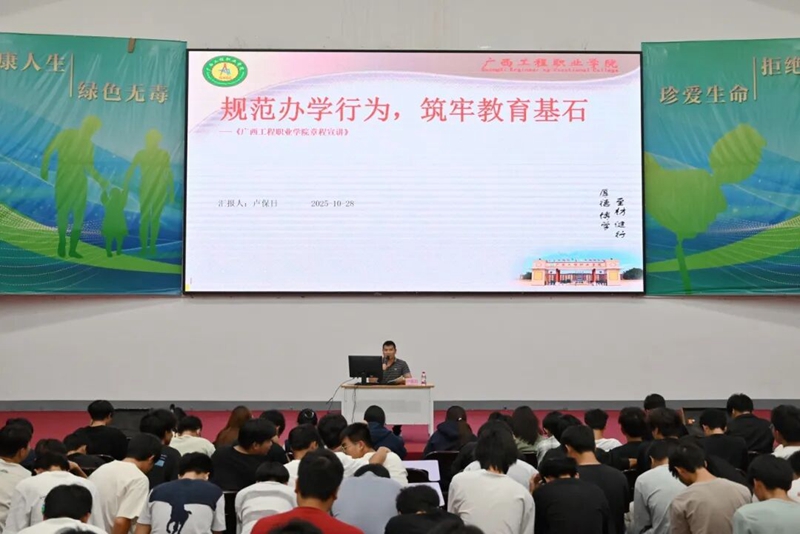 為深入貫徹落實(shí)立德樹人根本任務(wù),扎實(shí)推進(jìn)大學(xué)生思想政治教育關(guān)鍵環(huán)節(jié)建設(shè),幫助2025級新生快速融入大學(xué)生活、筑牢理想信念根基、厚植愛校榮校情懷,強(qiáng)化法治觀念、生命安全意識與專業(yè)學(xué)習(xí)能力,科學(xué)規(guī)劃職業(yè)生涯發(fā)展,成長為有理想、敢擔(dān)當(dāng)、能吃苦、肯奮斗的新時(shí)代青年,廣西工程職業(yè)學(xué)院于2025年10月初至11月下旬在體育館集中開展2025級新生入學(xué)教育活動(dòng)。