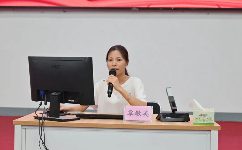 圖為學(xué)生工作處資助科科長范玉翠作《獎(jiǎng)助學(xué)金政策》專題教育