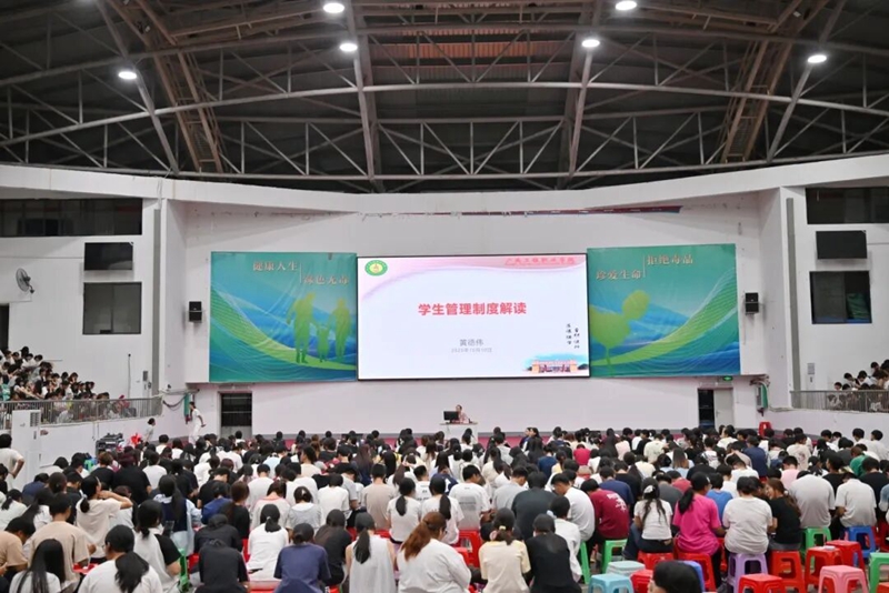 為幫助2025級新同學(xué)快速適應(yīng)校園環(huán)境、融入學(xué)習(xí)生活,進(jìn)一步明確學(xué)業(yè)目標(biāo)、明晰成長規(guī)劃,引導(dǎo)大家成長為有理想、敢擔(dān)當(dāng)、能吃苦、肯奮斗的新時(shí)代青年,10月9日,學(xué)校在體育館舉行2025級新生入學(xué)教育動(dòng)員大會(huì)。