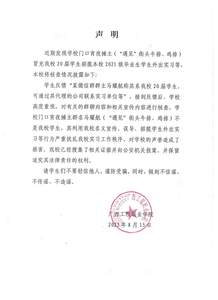 Copyright© 2007.4-2025.4 版權(quán)所有 廣西工程職業(yè)學(xué)院 網(wǎng)站備案/許可證號:桂ICP備08102409號-1 桂公網(wǎng)安備45102302000022 維護(hù):網(wǎng)電中心