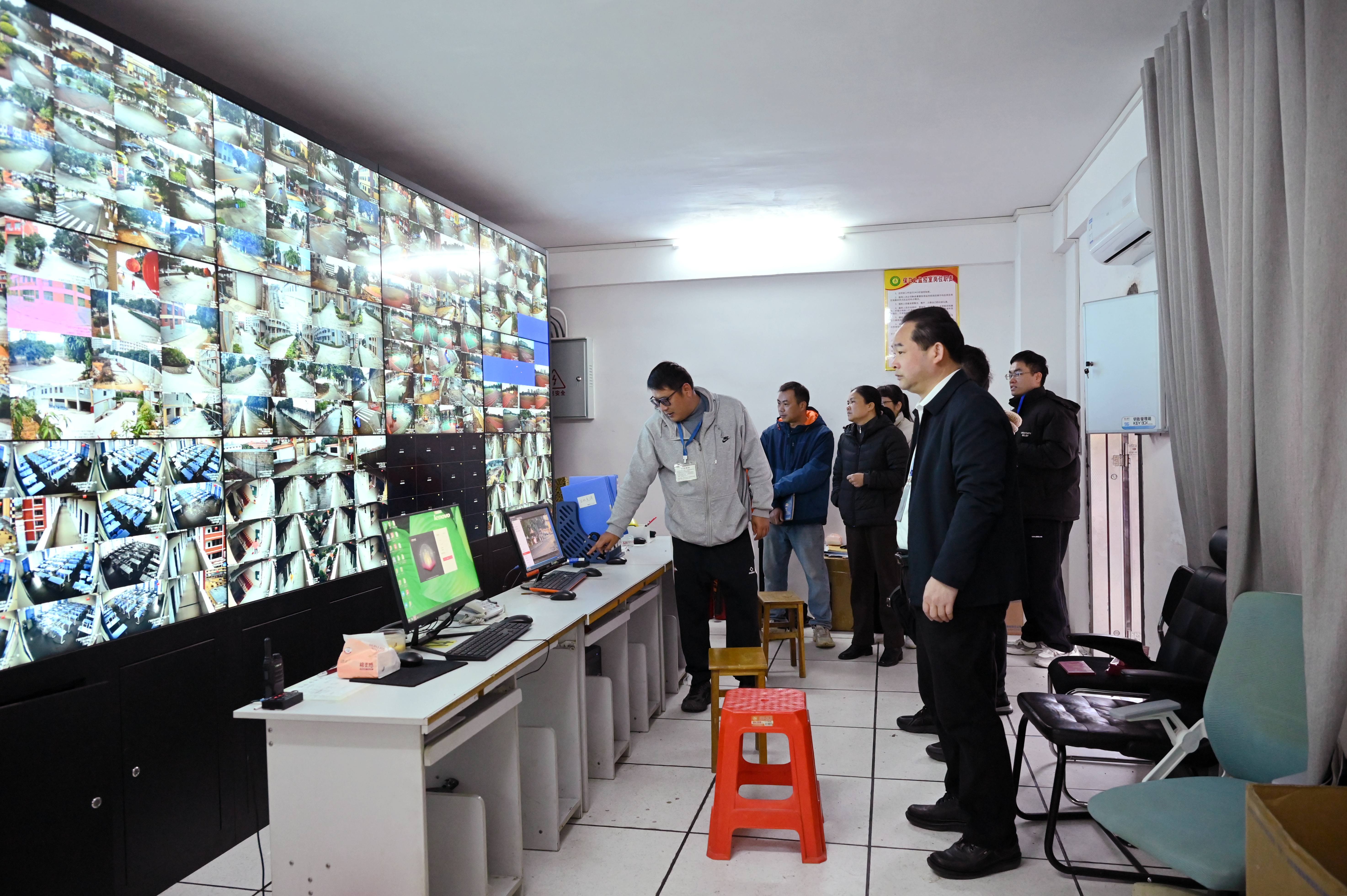 檢查小組首先查看監(jiān)控室的安保設施配備、監(jiān)控系統(tǒng)運行等情況,要求保衛(wèi)處進一步強化安全防范意識,嚴格落實門禁制度,加強校園巡邏,確保校園治安秩序良好。