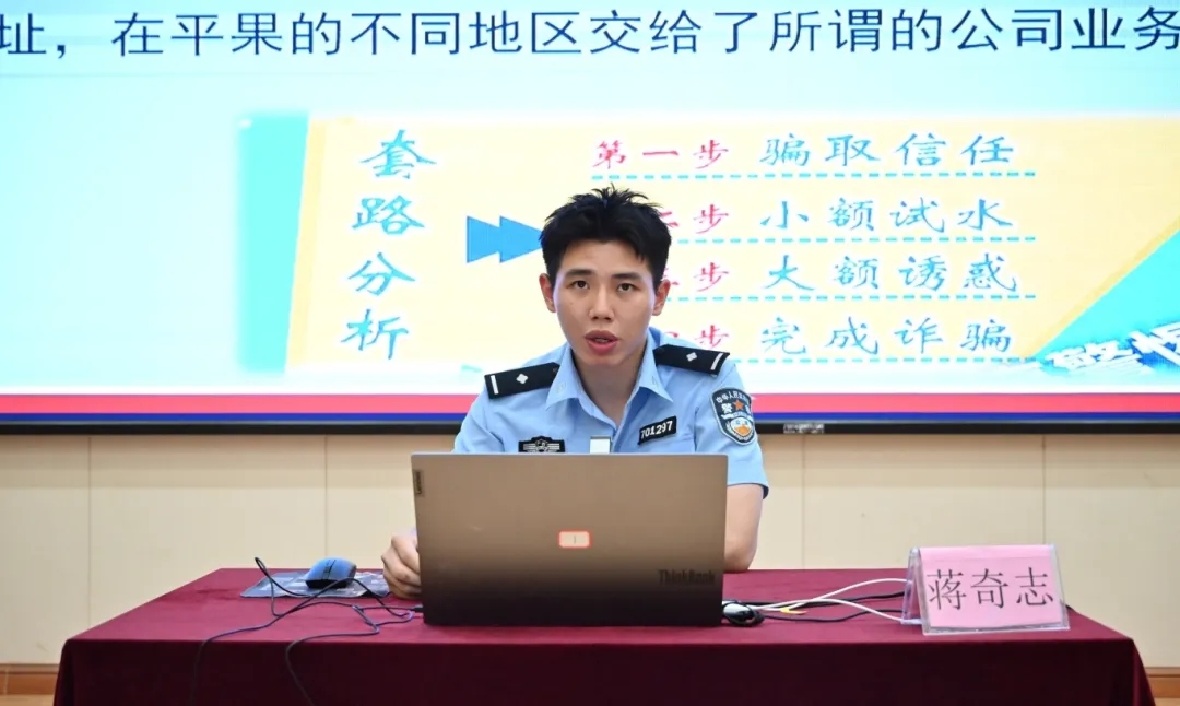 會(huì)上,蔣奇志警官結(jié)合本地真實(shí)案件,剖析四大高發(fā)詐騙類(lèi)型: