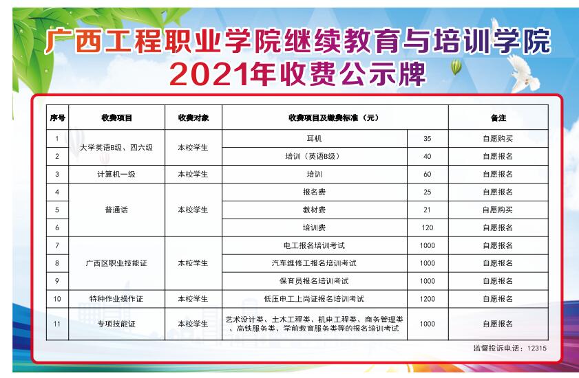 下一篇:廣西工程職業(yè)學(xué)院2024級學(xué)生2024年收費(fèi)項目和收費(fèi)標(biāo)準(zhǔn)公示