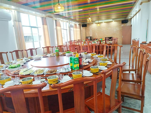 圖為教師到食堂幫忙準(zhǔn)備佳肴