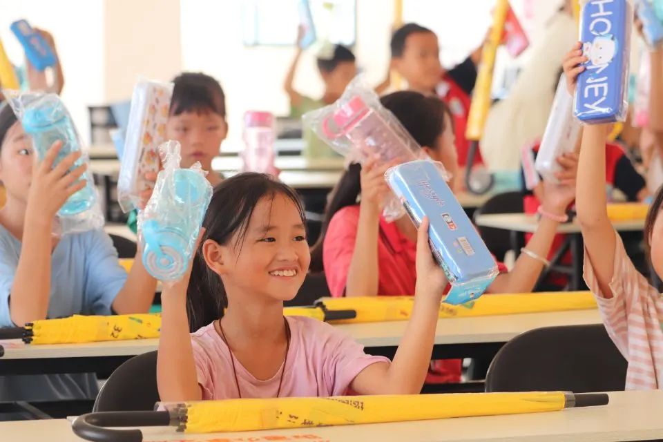 青春“益”起行,成長(zhǎng)心相伴。我校把一批實(shí)用的學(xué)習(xí)用品文具、水杯、雨傘、衣服等送到孩子們的手中,為孩子們送上一片心意,希望小朋友們努力學(xué)習(xí),勇敢追夢(mèng),走出大山。