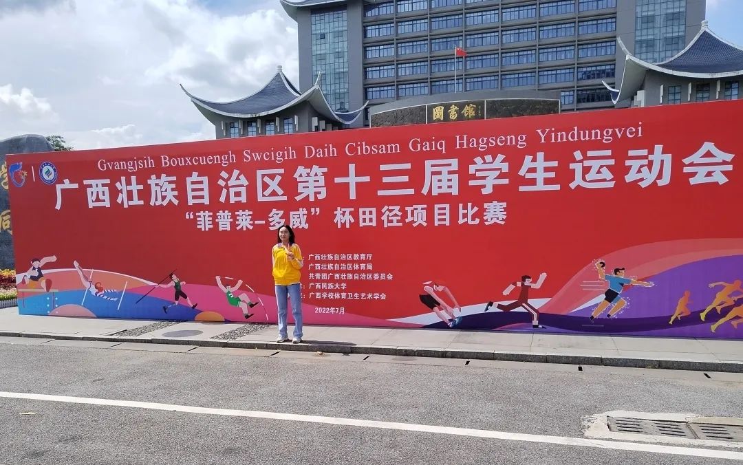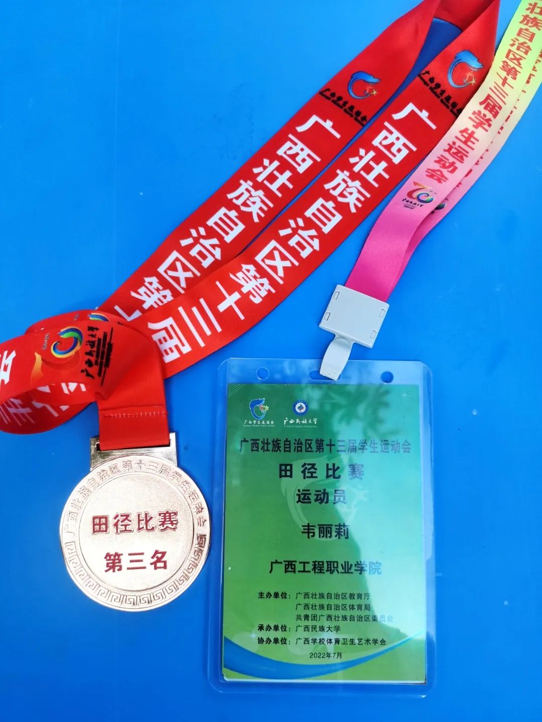 2022年7月10日上午,廣西工程職業(yè)學(xué)院田徑代表隊在廣西壯族自治區(qū)第十三屆學(xué)生運(yùn)動會田徑比賽女子高職高專組三級跳遠(yuǎn)賽項中榮獲第三名的喜人成績,首戰(zhàn)告捷!