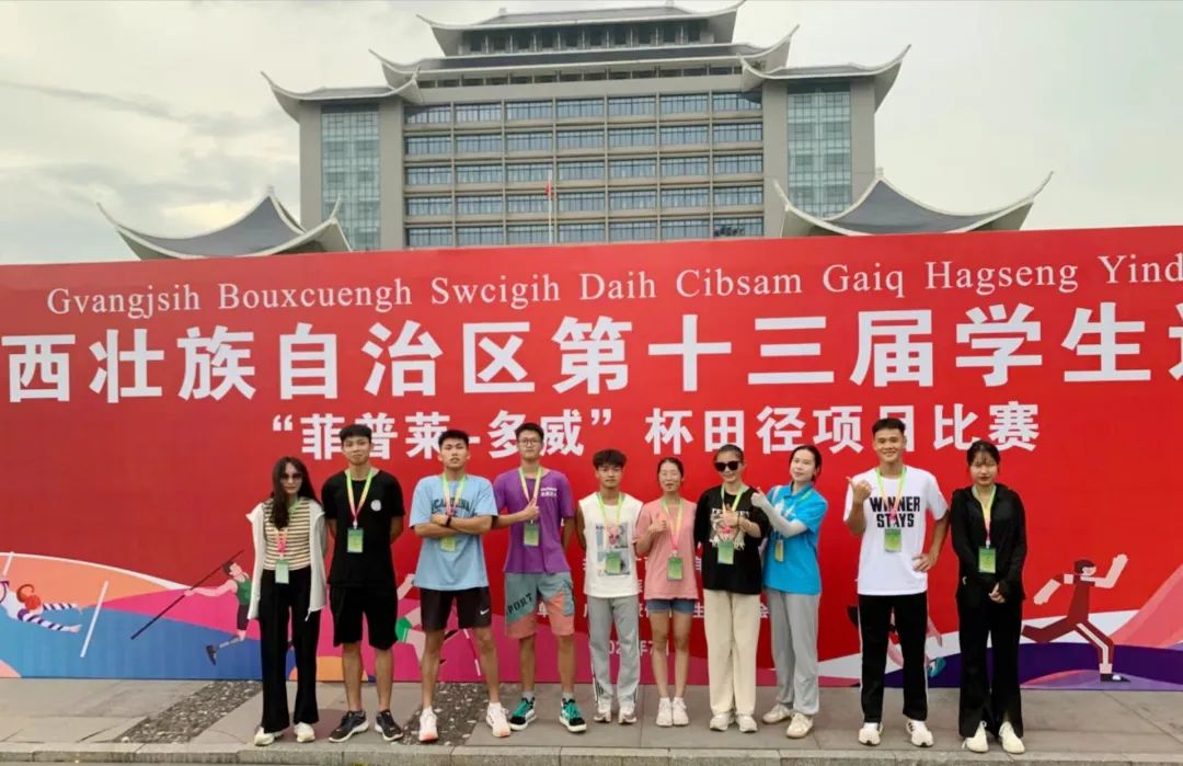 據(jù)悉,廣西壯族自治區(qū)第十三屆學(xué)生運(yùn)動會田徑比賽7月10日—14日在廣西民族大學(xué)西校區(qū)舉行,廣西工程職業(yè)學(xué)院田徑代表隊在蒙永福、陸路和蔡富榮老師的帶領(lǐng)下,選派了9名運(yùn)動員參賽三級跳遠(yuǎn)、跳高、鉛球、100米、200米、800米、1500米和5000米等比賽項目。