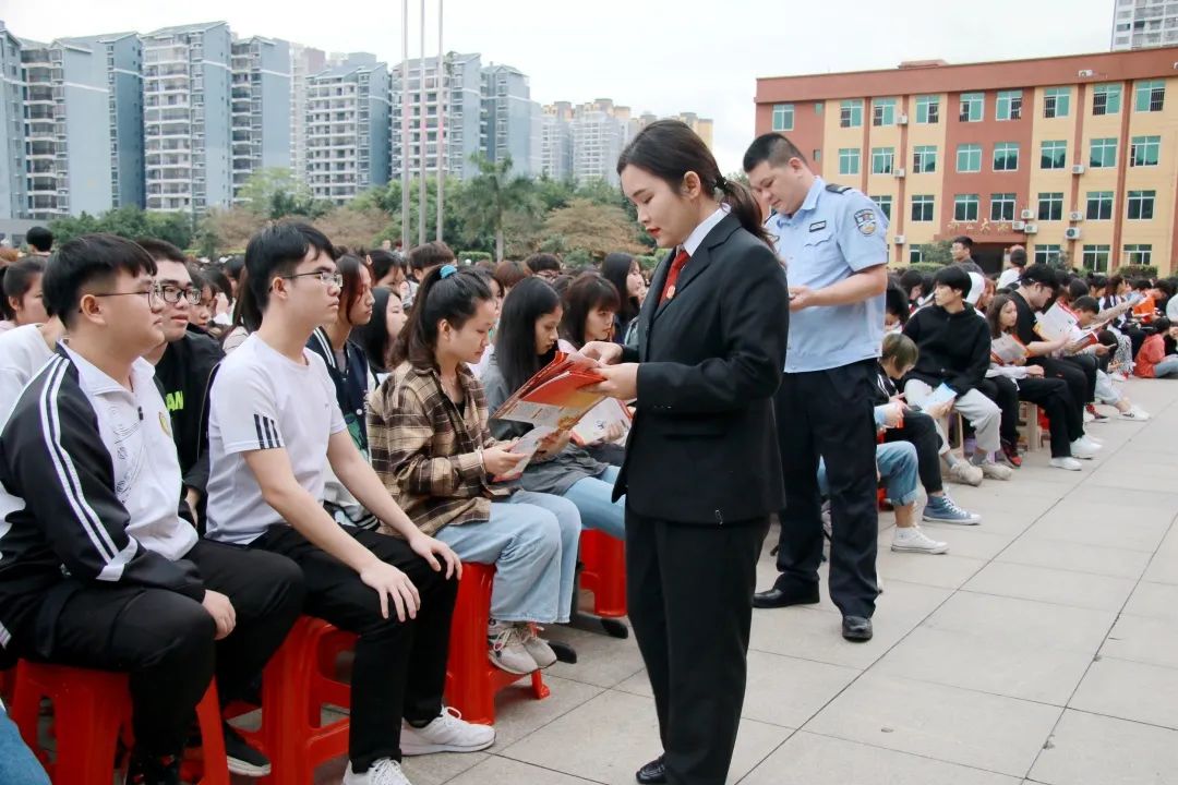 講座現(xiàn)場(chǎng),平果市人民法院工作人員發(fā)放法制教育宣傳資料