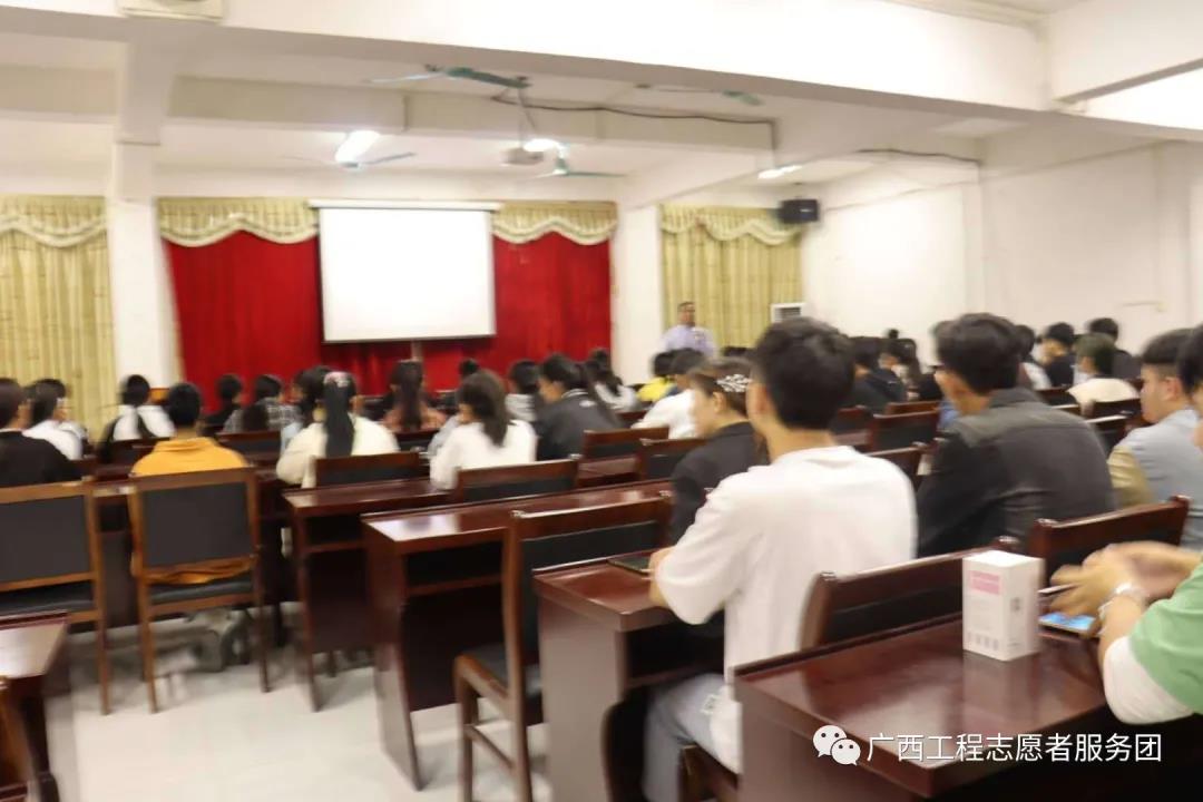 2020年11月12日晚上7點很榮幸百色中心血站的(蘇愛權)蘇科長和盤家浪姐姐蒞臨我校在辦公大樓4樓宣講了關于無償獻血的專題知識講座。我校的青年志愿者服務團,校廣播站,校學生會積極組織學生參加了本次的獻血知識講座。