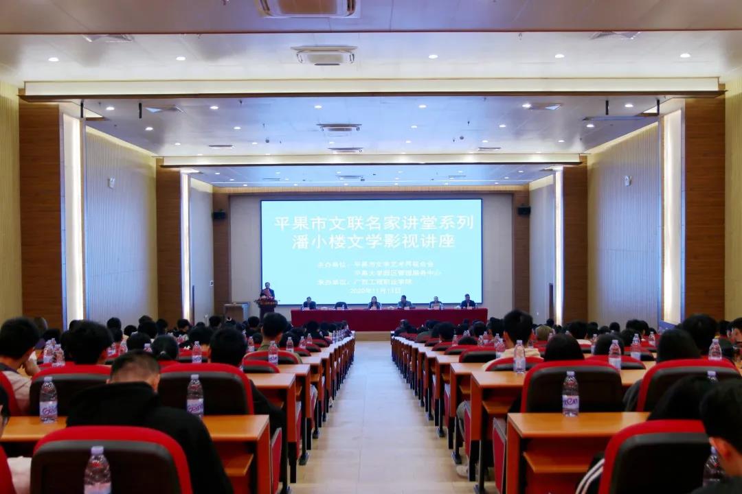 11月13日上午,由平果市文聯(lián)、平果市大學(xué)園區(qū)管理服務(wù)中心主辦,廣西工程職業(yè)學(xué)院承辦,平果市作家協(xié)會協(xié)辦的“平果市文聯(lián)名家講堂系列”之“潘小樓文學(xué)影視講座”在廣西工程職業(yè)學(xué)院舉行。平果市作家協(xié)會會員、平果鋁右江源文學(xué)社、平果大學(xué)園區(qū)各高校文學(xué)社團(tuán)及文學(xué)愛好者近300人到場聆聽。
