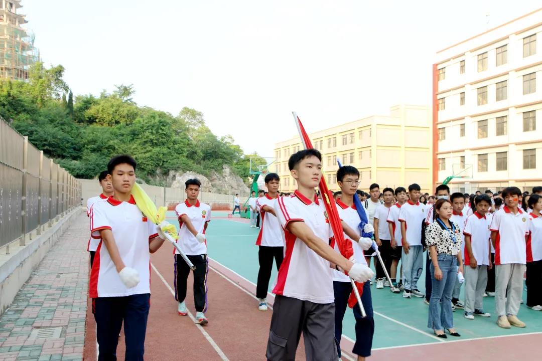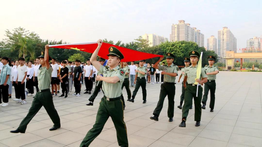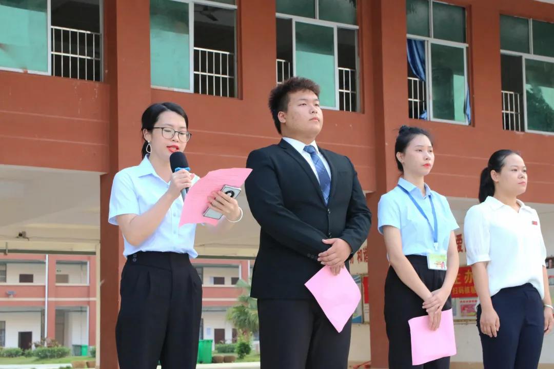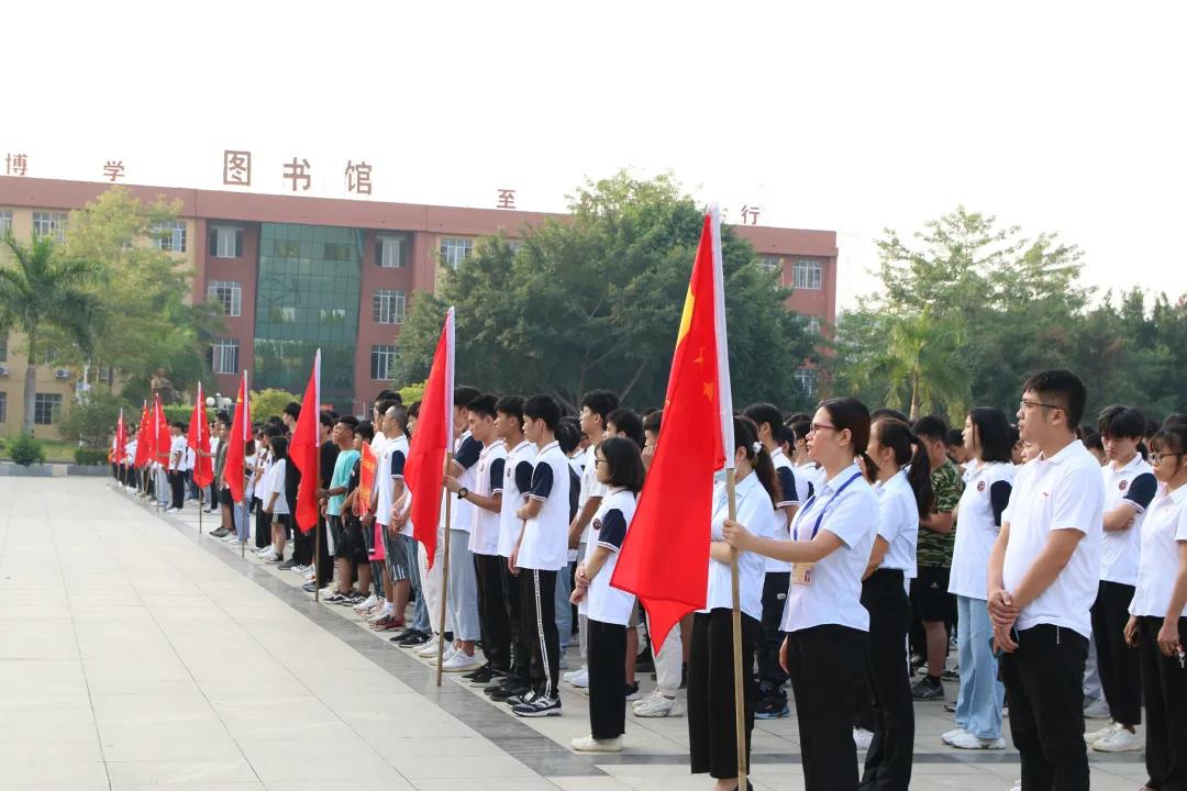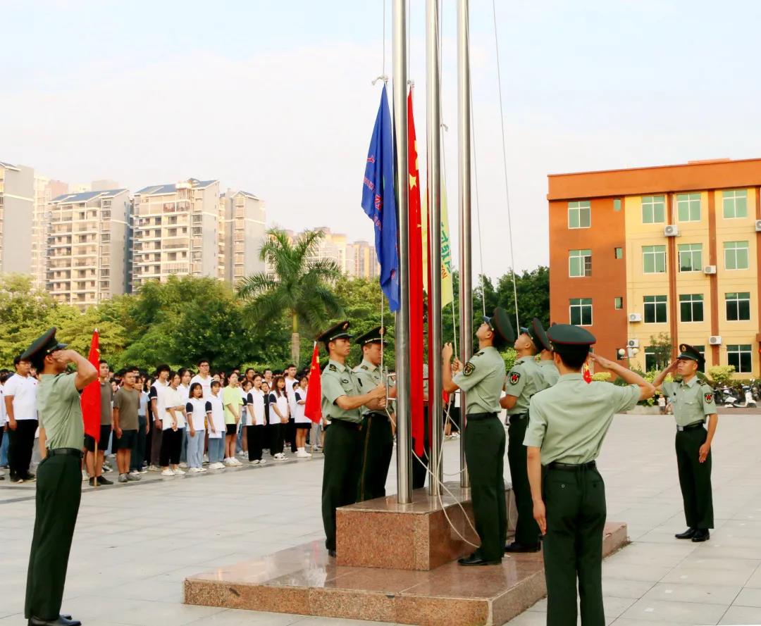 學(xué)校執(zhí)行校長、紀(jì)委書記李益,黨委委員、副校長彭高彬,副校長林萌、黃德偉,校長助理黃秋霞以及中層干部出席升旗儀式