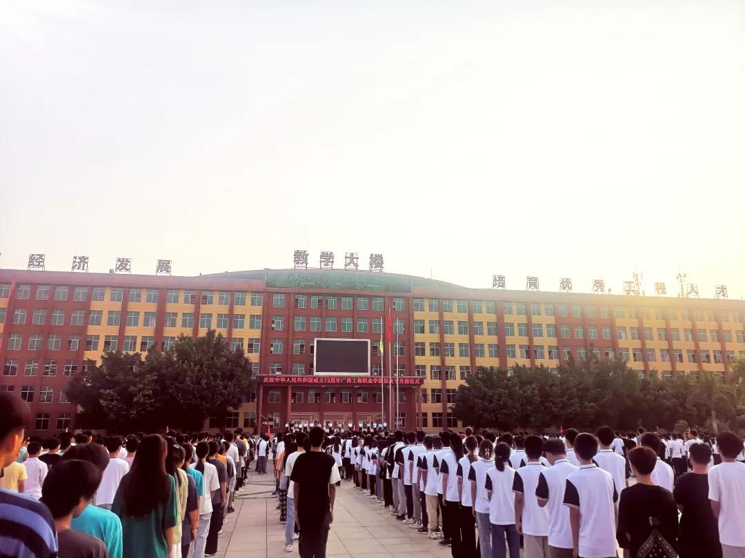 為慶祝中華人民共和國成立72周年,進(jìn)一步激發(fā)全體師生愛國熱情,切實(shí)加強(qiáng)黨史學(xué)習(xí)教育和深化學(xué)生思想政治教育,培育和踐行社會(huì)主義核心價(jià)值觀,鑄牢中華民族共同體意識,提升凝聚力和向心力,10月1日上午,廣西工程職業(yè)學(xué)院在魯班廣場舉行“祖國,我為您驕傲”主題升國旗儀式。學(xué)校領(lǐng)導(dǎo)班子和師生代表兩千余人參加了活動(dòng),共同祝福偉大祖國繁榮昌盛、人民幸福安康。校長助理黃秋霞主持升旗儀式。