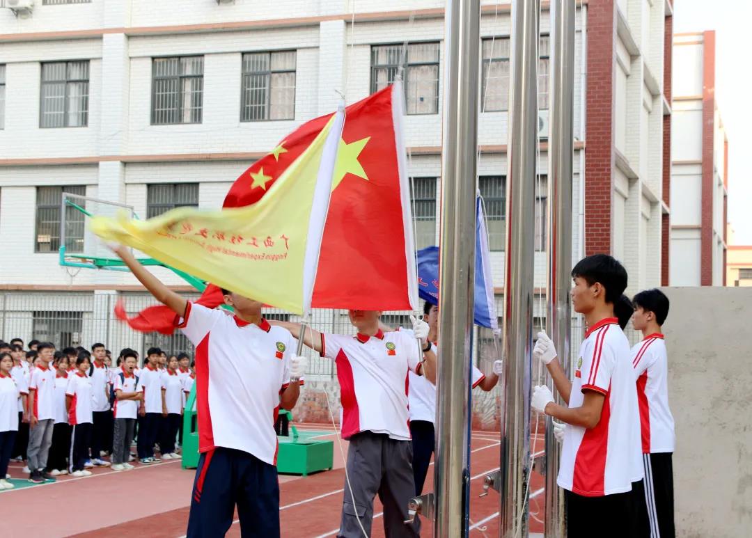 全體肅立,奏唱國歌,五星紅旗冉冉升起,迎風(fēng)飄揚(yáng)。在場的每一位師生向國旗靜靜地行注目禮,表達(dá)對祖國母親真摯的熱愛、崇高的敬意和深深的祝福;表達(dá)全體師生團(tuán)結(jié)一致、拼搏奮進(jìn)的決心和愿望。