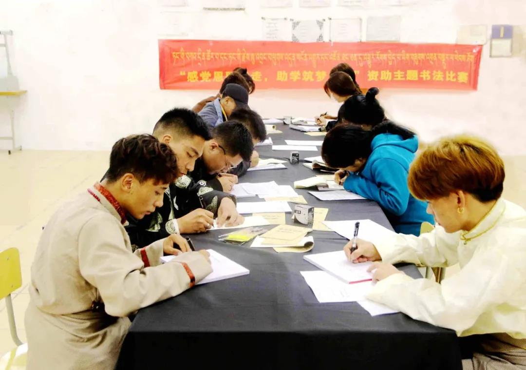 藏族同學(xué)在練書(shū)法