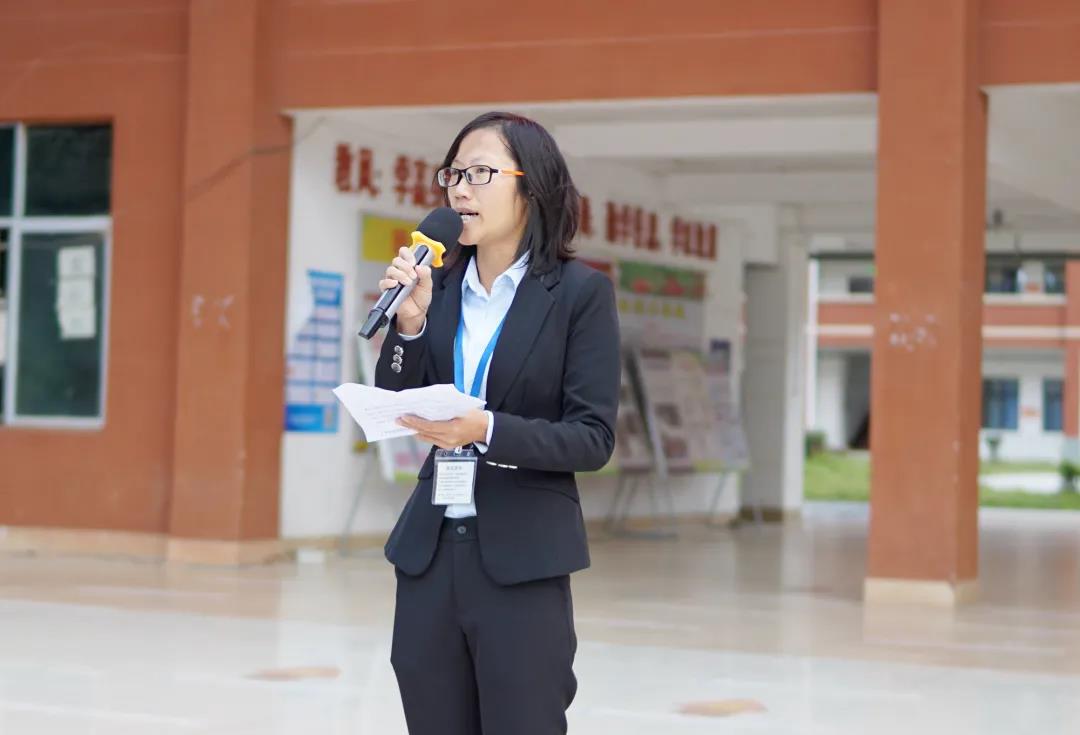 經(jīng)濟管理學院黨支部書記、副院長覃清香主持升旗儀式