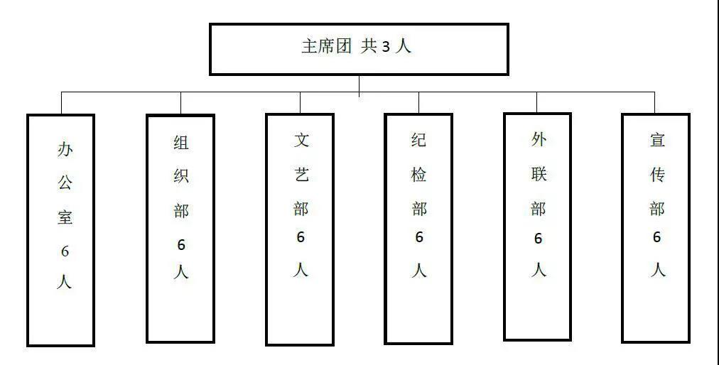 第二十條 校學(xué)生會各工作部門是學(xué)生會的辦事機(jī)構(gòu),對主席團(tuán)負(fù)責(zé)。根據(jù)工作需要,校學(xué)生會設(shè)以下部門:辦公室、組織部、文藝部、紀(jì)檢部、外聯(lián)部、宣傳部。各工作部門設(shè)部長1名,副部長若干名,干事若干名。學(xué)生會工作人員總?cè)藬?shù)不超過 40 人。