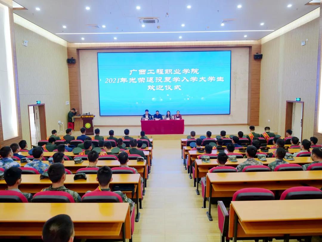 11月11日下午,廣西工程職業(yè)學(xué)院在圖文信息大樓報(bào)告廳舉行2021年度光榮退役復(fù)學(xué)入學(xué)大學(xué)生歡迎儀式。學(xué)校副校長黃德偉副教授,校長助理黃秋霞及部分二級學(xué)院負(fù)責(zé)人出席儀式,2021年度退役復(fù)學(xué)入學(xué)大學(xué)生以及軍事協(xié)會(huì)學(xué)生代表參加了會(huì)議。保衛(wèi)處副處長、征兵工作站負(fù)責(zé)人李捷主持會(huì)議。