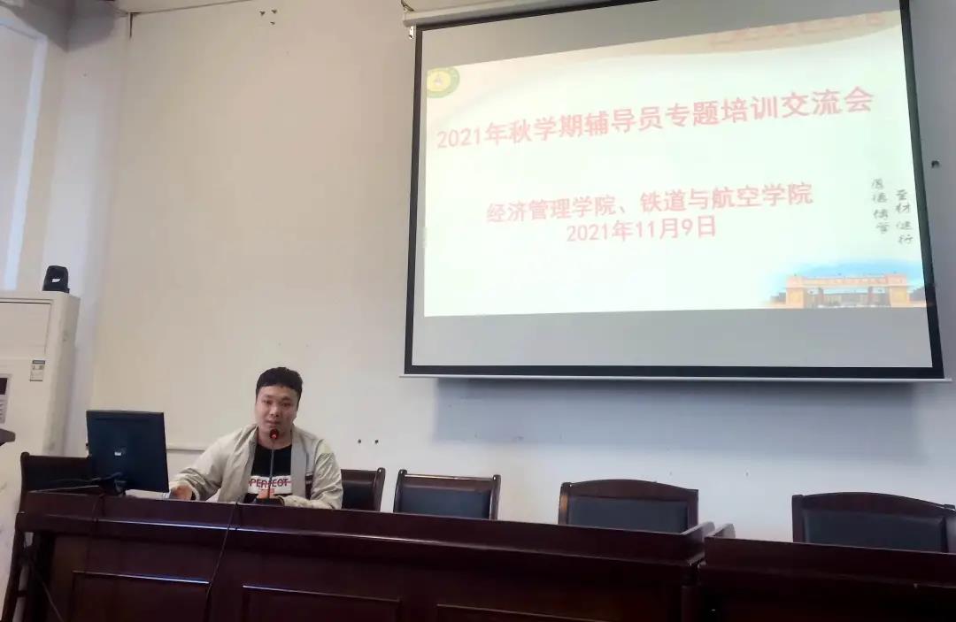 為提升我校思想政治工作質量和輔導員隊伍建設水平,培養(yǎng)輔導員隊伍的職業(yè)榮譽感與歸屬感,增強輔導員的團隊協(xié)作意識,推動輔導員隊伍專業(yè)化、職業(yè)化發(fā)展,11月9日下午,經濟管理學院、鐵道與航空管理學院在圖書館學術報告廳聯(lián)合召開2021年秋季學期輔導員專題培訓交流會,學校黨委委員、副校長彭高彬參與并指導此次交流會,兩個二級學院的黨支部書記、分團委書記、全體輔導員參加交流會。