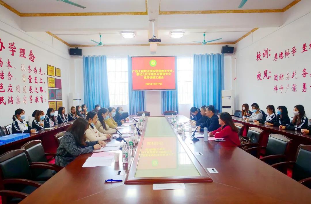 11月19日上午,以桂林師范高等??茖W(xué)校副校長何紅雨為組長的廣西學(xué)前教育職業(yè)教育教學(xué)指導(dǎo)委員會專家組一行4人到我校開展學(xué)前教育專業(yè)、嬰幼兒托育服務(wù)與管理專業(yè)辦學(xué)情況視導(dǎo)調(diào)研,黨委委員、副校長彭高彬,副校長林萌、羅艷妮、黃德偉及相關(guān)處室負(fù)責(zé)人、專任教師參加了調(diào)研工作及意見反饋會。