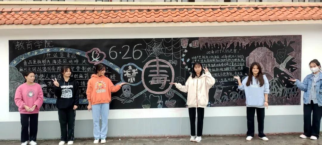 用心完成禁毒宣傳黑板報的同學(xué)們