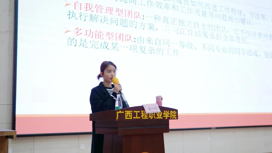 謝小玲老師作題為《學生干部如何加強團隊建設和團隊素質拓展》的專題培訓