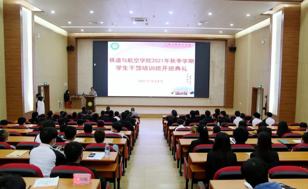 12月4日上午,學生干部培訓班開班儀式在圖文信息大樓報告廳舉行。學校黨委委員、副校長彭高彬,鐵道與航空學院黨支部書記、副院長覃鳳姣,學生科長謝小玲出席開班儀式,全體2020級、2021級學生干部參加培訓。儀式由覃鳳姣副院長主持。