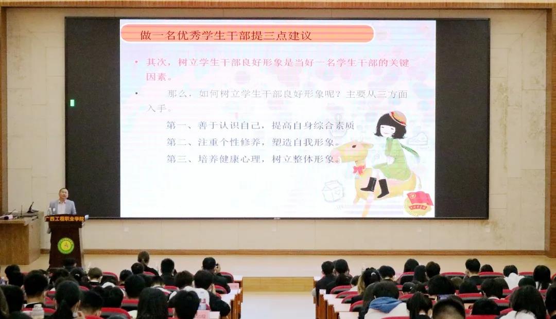 彭高彬副校長在開班第一講中作題為《如何做一名優(yōu)秀的學生干部》的專題培訓。
