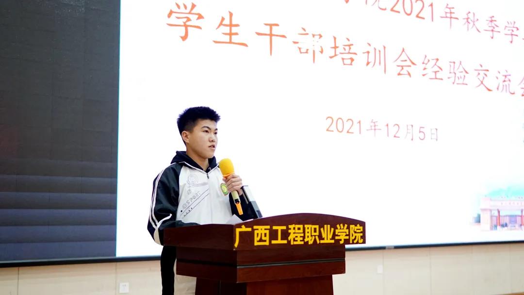覃鳳姣副院長希望全體學生干部爭做有理想、有追求,有擔當、有作為,有品質、有修養(yǎng)的新時代優(yōu)秀學生干部