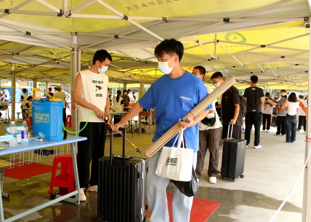 校門口處志愿者做好了準(zhǔn)備等待萌新的到來(lái)