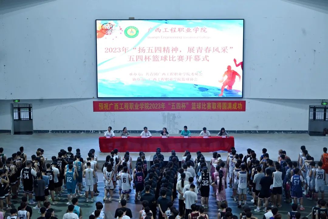 黃秋霞副書記宣布廣西工程職業(yè)學(xué)院“揚(yáng)五四精神,展青春風(fēng)采”五四杯籃球賽開幕!