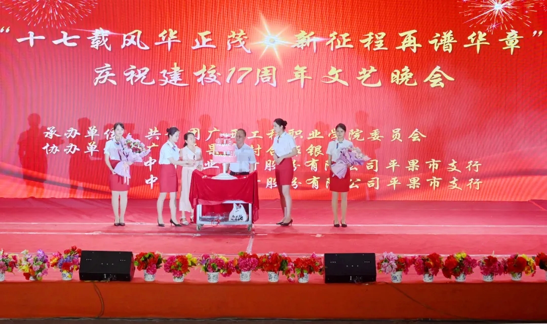 晚會(huì)上還設(shè)置了暖心的慶生環(huán)節(jié),學(xué)校董事長李益、副董事長林艷一起許愿、吹蠟燭、切蛋糕,全場(chǎng)用祝福的歌聲共同慶祝廣西工程職業(yè)學(xué)院建校17周年,祝愿廣西工程職業(yè)學(xué)院的明天越來越美好!