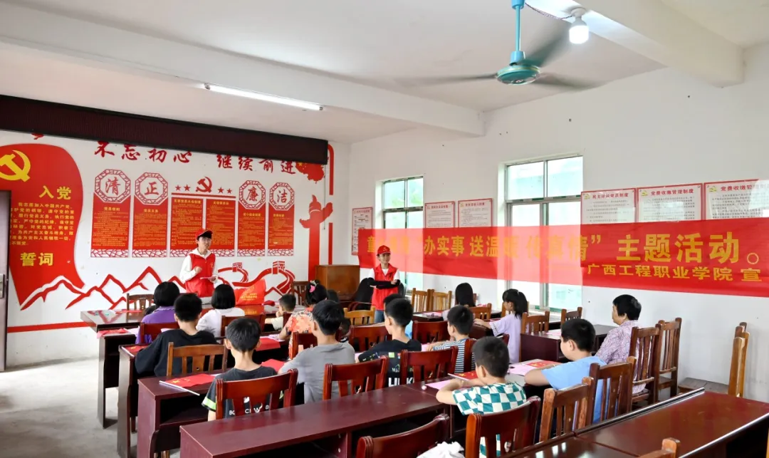 為了進一步讓青年大學(xué)生了解鄉(xiāng)村建設(shè)發(fā)展現(xiàn)狀,給鄉(xiāng)村振興建設(shè)注入新活力,為助力鄉(xiāng)村振興貢獻青春力量,2024年7月18日,廣西工程職業(yè)學(xué)院“青年先鋒隊,基層實踐行”服務(wù)團、“傳承紅色基因,勇?lián)鷷r代使命”實踐團到平果市新安鎮(zhèn)三合村開展禁毒防艾宣傳、環(huán)境保護宣傳、心理咨詢、關(guān)愛留守兒童、教育幫扶等特色實踐服務(wù)活動。