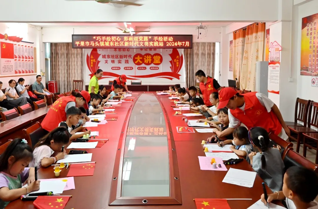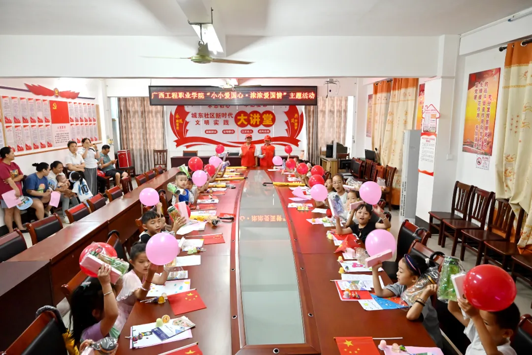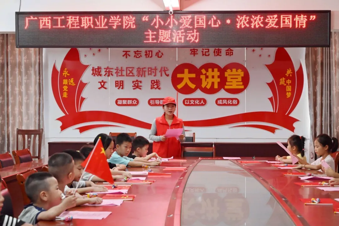 今年是新中國成立75周年,為了進(jìn)一步弘揚(yáng)愛國主義精神,踐行社會主義核心價(jià)值觀,2024年7月19日,廣西工程職業(yè)學(xué)院“青年先鋒隊(duì),基層實(shí)踐行”服務(wù)團(tuán)、“傳承紅色基因,勇?lián)鷷r(shí)代使命”實(shí)踐團(tuán)到平果市馬頭鎮(zhèn)城東社區(qū)開展“小小愛國心 濃濃愛國情”“巧手繪初心 彩畫頌黨恩”“中華民族一家親 同心共筑中國夢”等特色實(shí)踐服務(wù)活動。