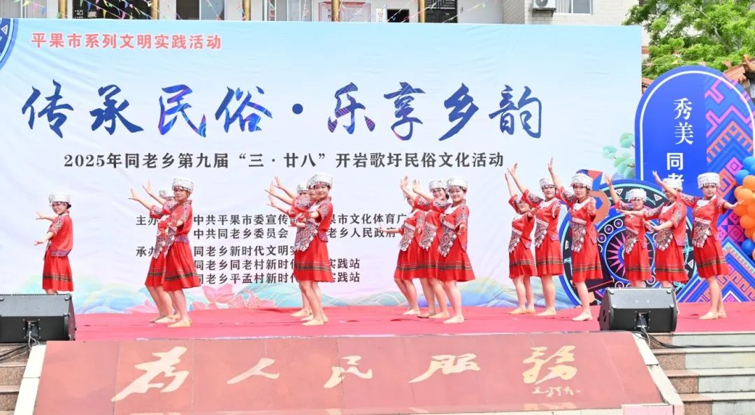 2025年4月25日,廣西工程職業(yè)學(xué)院學(xué)子參加平果市同老鄉(xiāng)舉辦的第九屆“三·廿八”開巖歌圩民俗文化活動,并帶來精彩的節(jié)目表演。他們與當(dāng)?shù)卮迕颀R聚一堂,以歌會友、以舞傳情,共同奏響民族團(tuán)結(jié)的和諧樂章,繪就一幅各族同胞交融共生的動人畫卷。