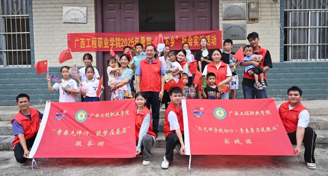 2025年7月14日,廣西工程職業(yè)學(xué)院“紅色研學(xué)踐初心·青春聚力促振興”實(shí)踐團(tuán)、廣西工程職業(yè)學(xué)院“青春先鋒行,筑夢(mèng)在基層”服務(wù)團(tuán)走進(jìn)平果市馬頭鎮(zhèn)布夭屯開展“七彩畫筆繪鄉(xiāng)村,三下鄉(xiāng)情暖童心 ”等特色暑期“三下鄉(xiāng)”社會(huì)實(shí)踐活動(dòng)。通過“田間課堂”“童聲頌祖國”等特色活動(dòng)的開展,將語言文化教育與勞動(dòng)實(shí)踐相結(jié)合,為鄉(xiāng)村兒童帶來豐富多彩的活動(dòng),以實(shí)際行動(dòng)助力鄉(xiāng)村文化振興。
