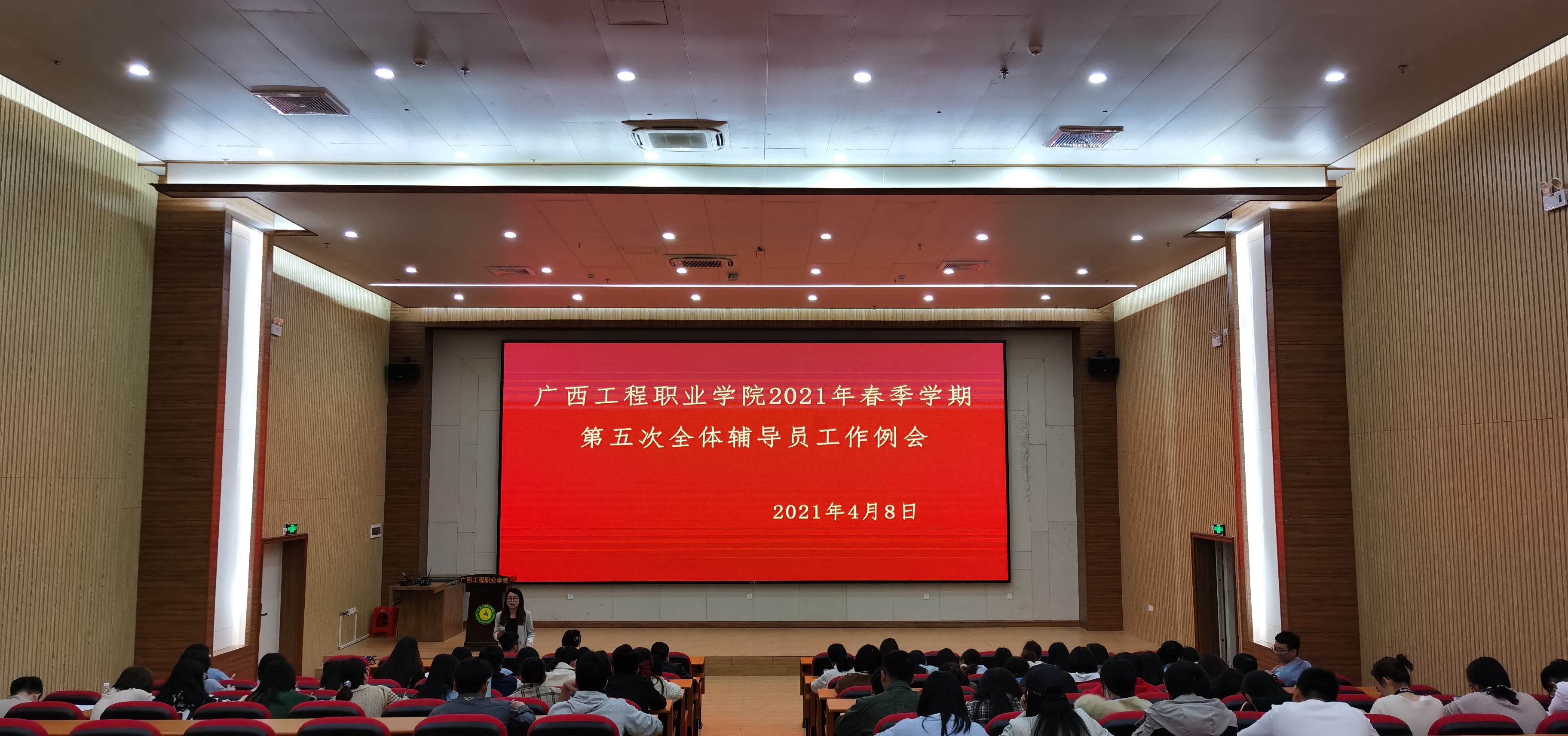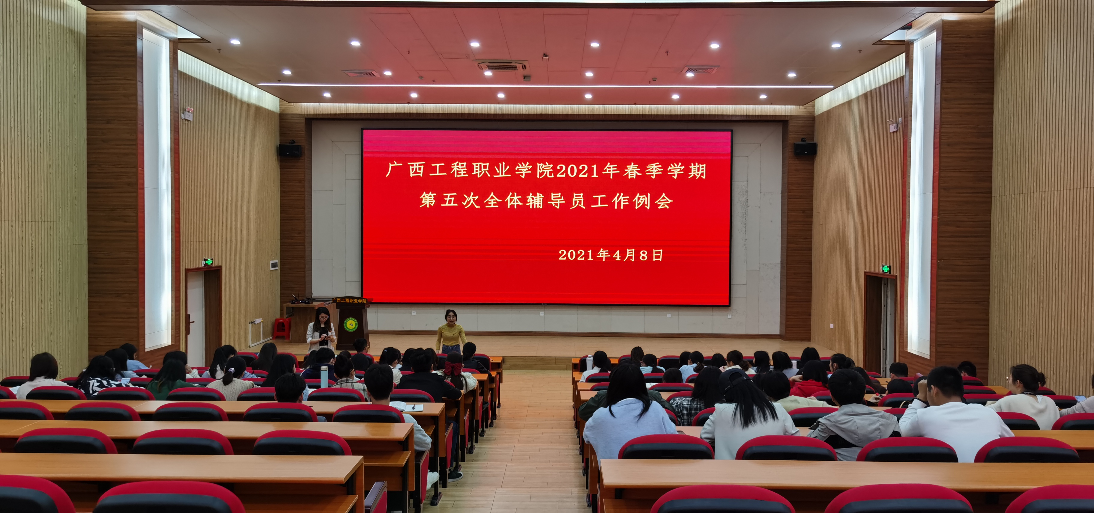 2021年4月8日,學(xué)生工作處在圖文信息大樓一樓學(xué)術(shù)報告廳召開第5次輔導(dǎo)員工作例會。校長助理黃秋霞、學(xué)生工作處成員、各二級學(xué)院負責(zé)人及全體輔導(dǎo)員參加會議。