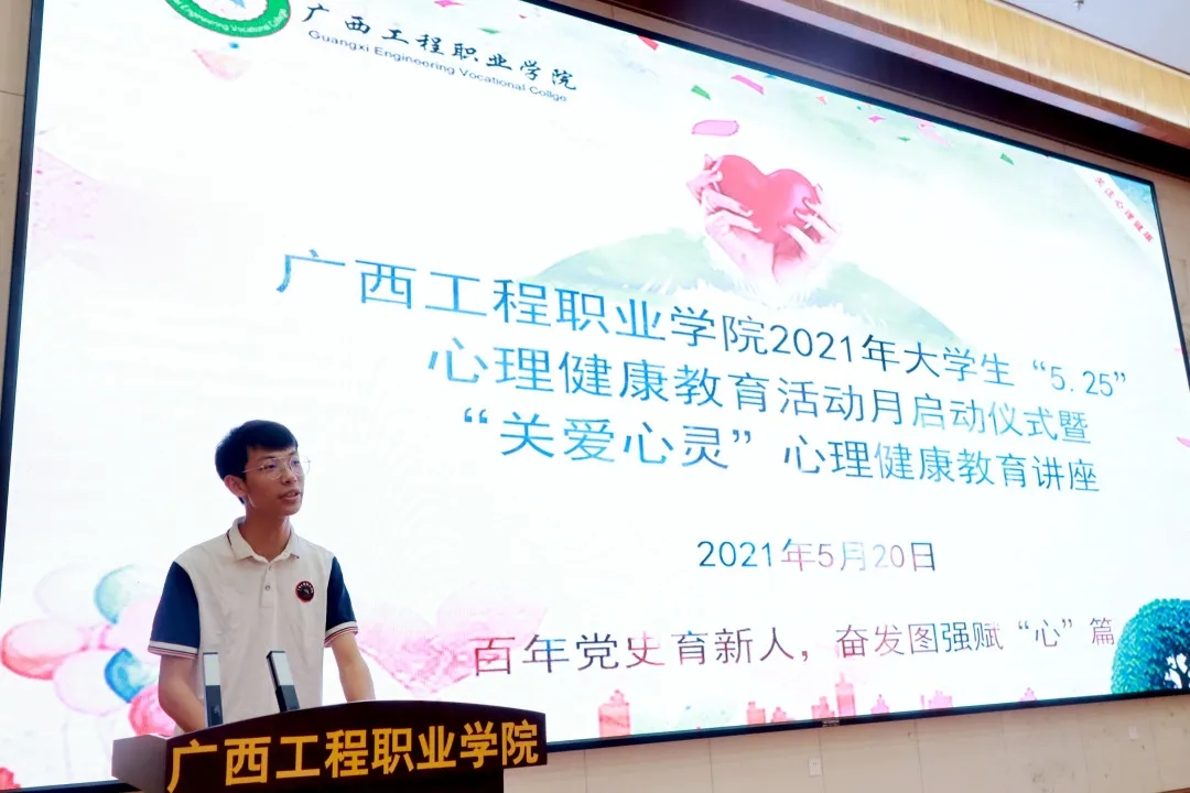 為進(jìn)一步提高學(xué)生的心理健康水平,培育學(xué)生熱愛生命、自強(qiáng)不息、積極向上的健康心態(tài),加強(qiáng)人文關(guān)懷和心理疏導(dǎo),開展我校學(xué)生心理健康教育活動(dòng),促進(jìn)學(xué)生心理健康素質(zhì)與愛黨愛國思想道德素質(zhì)、科學(xué)文化素質(zhì)協(xié)調(diào)發(fā)展。2021年5月20日下午,我校學(xué)生工作處在圖文信息大樓一樓學(xué)術(shù)報(bào)告廳組織開展2021年我校大學(xué)生“5·25”心理健康教育活動(dòng)月啟動(dòng)儀式暨“關(guān)愛心靈”心理健康教育講座。