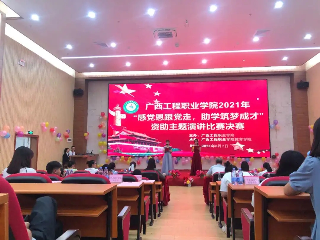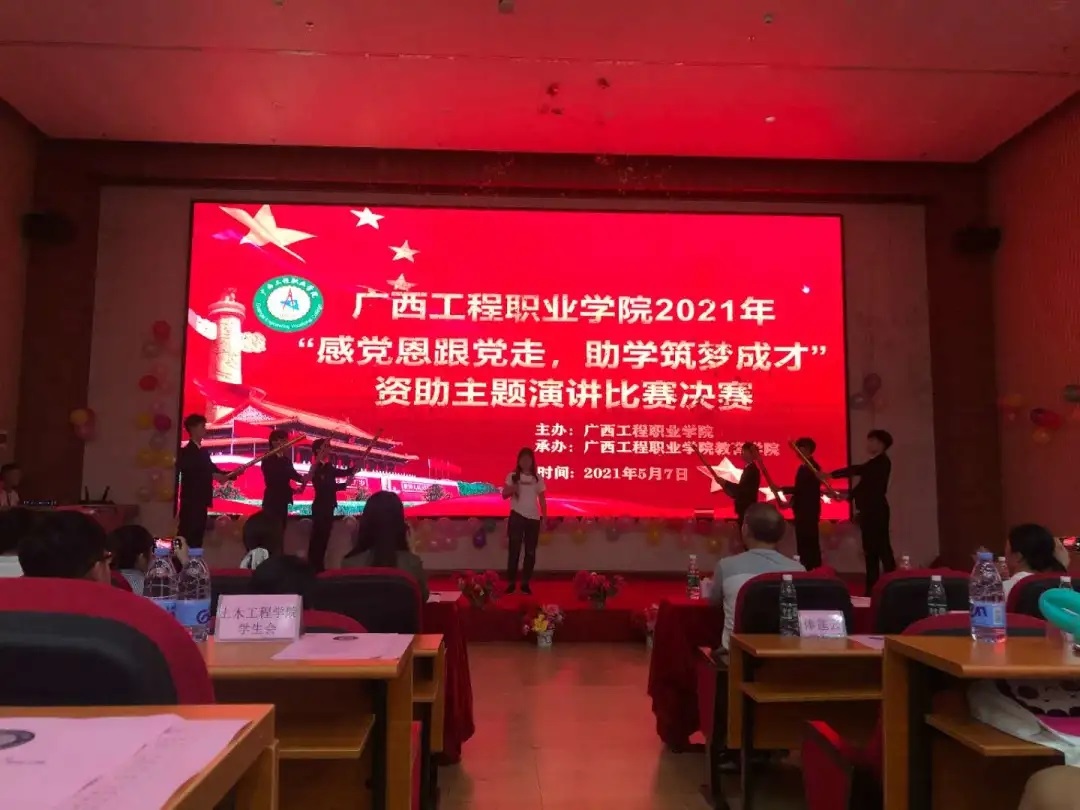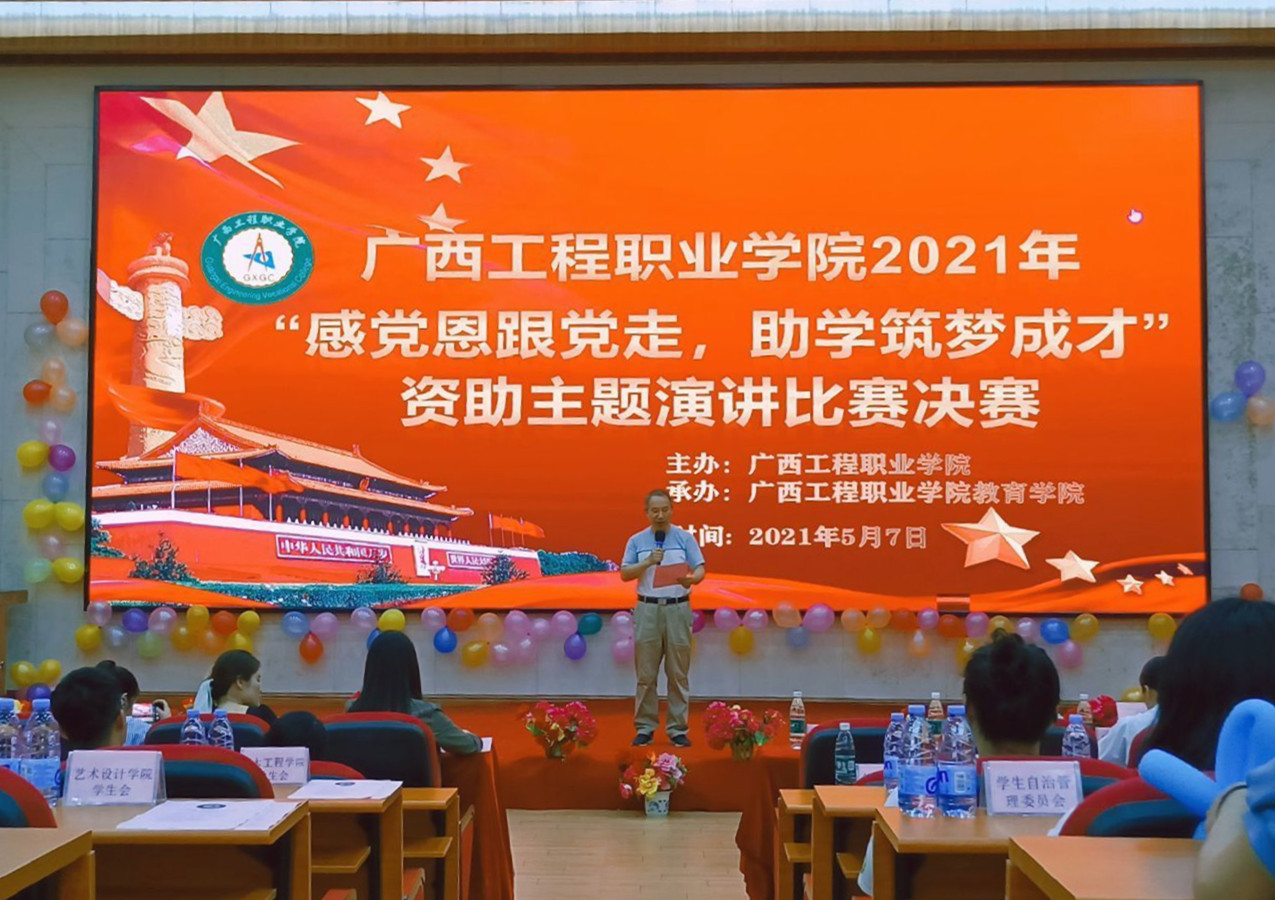 為了進(jìn)一步推進(jìn)我校學(xué)生資助政策宣傳工作,培育受助學(xué)生的愛黨愛國情感和感恩意識,2021年5月7日,由我校主辦,我校教育學(xué)院承辦的廣西工程職業(yè)學(xué)院2021年“感黨恩跟黨走,助學(xué)筑夢成才”演講比賽決賽于我校于圖文信息大樓一樓學(xué)術(shù)報(bào)告廳舉行。學(xué)校黨委副書記、副校長胡細(xì)木、副校長林萌、教育學(xué)院副院長梁善雅及各學(xué)院師生代表到場觀看了本次比賽。