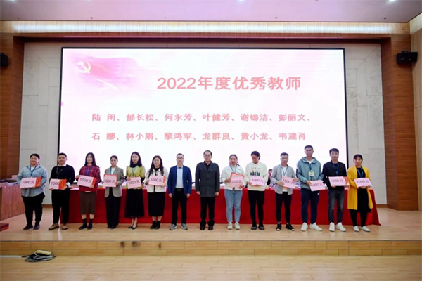 副校長(zhǎng)吳先夏、黃德偉為榮獲優(yōu)秀教師稱號(hào)的教師頒獎(jiǎng)