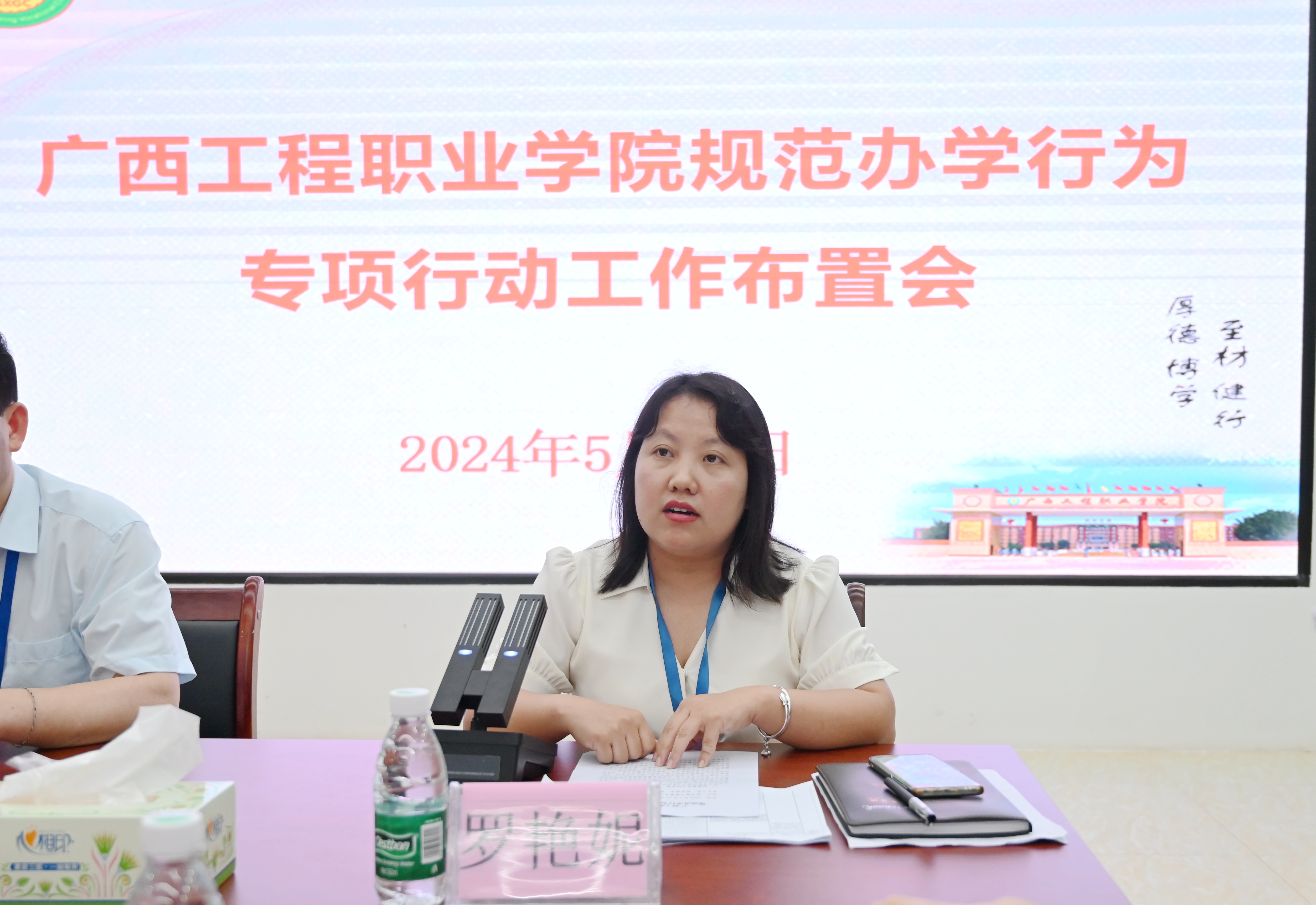 為做好我校開展規(guī)范辦學(xué)行為專項(xiàng)行動相關(guān)工作,2024年5月10日下午,我校在圖書館大數(shù)據(jù)中心召開規(guī)范辦學(xué)專項(xiàng)行動布置會,會議由校長羅艷妮主持,全體校級領(lǐng)導(dǎo)、校屬各單位負(fù)責(zé)人參加會議。