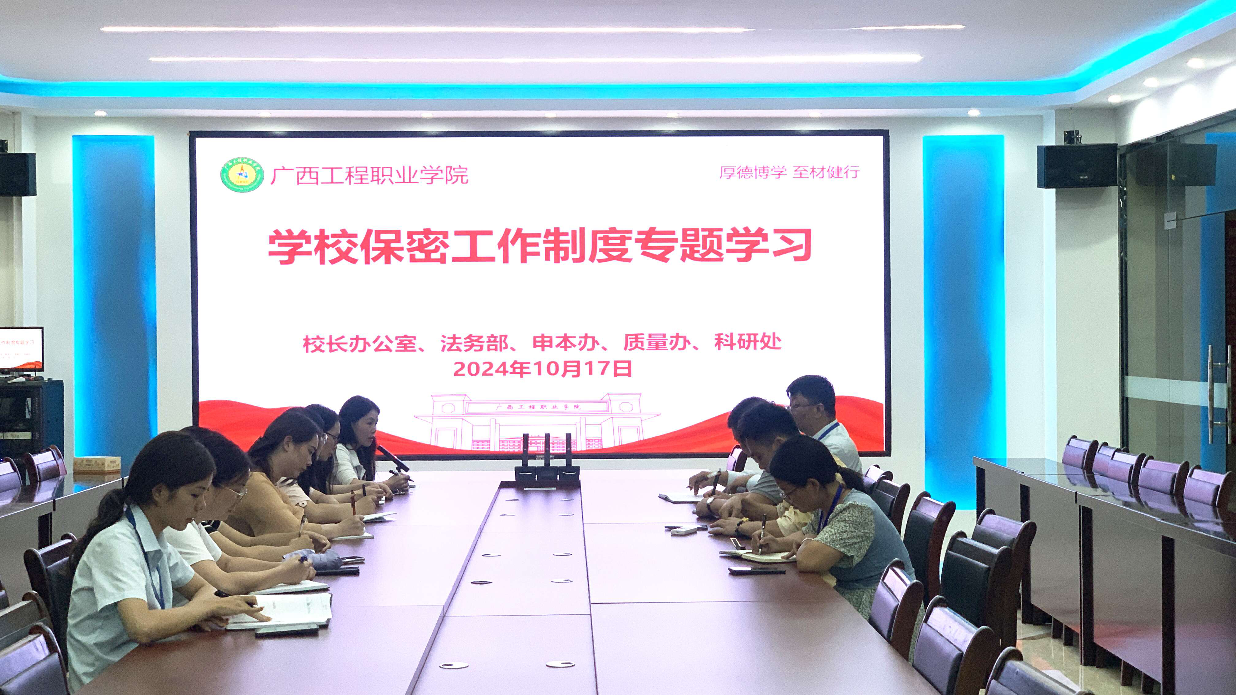 為進(jìn)一步加強(qiáng)保密工作管理,切實(shí)增強(qiáng)本單位教師的保密意識(shí),筑牢保密安全防線,于10月17日組織本單位開展了保密工作制度專題學(xué)習(xí)活動(dòng),會(huì)議由校長辦公室、法務(wù)部、申本辦、質(zhì)量管理辦公室、科研處全體成員參加。此次活動(dòng)旨在深入貫徹習(xí)近平總書記關(guān)于保密工作的重要講話和指示批示精神,全面落實(shí)《廣西工程職業(yè)學(xué)院保密工作管理規(guī)定(修訂)的通知》的學(xué)習(xí)宣傳貫徹要求。